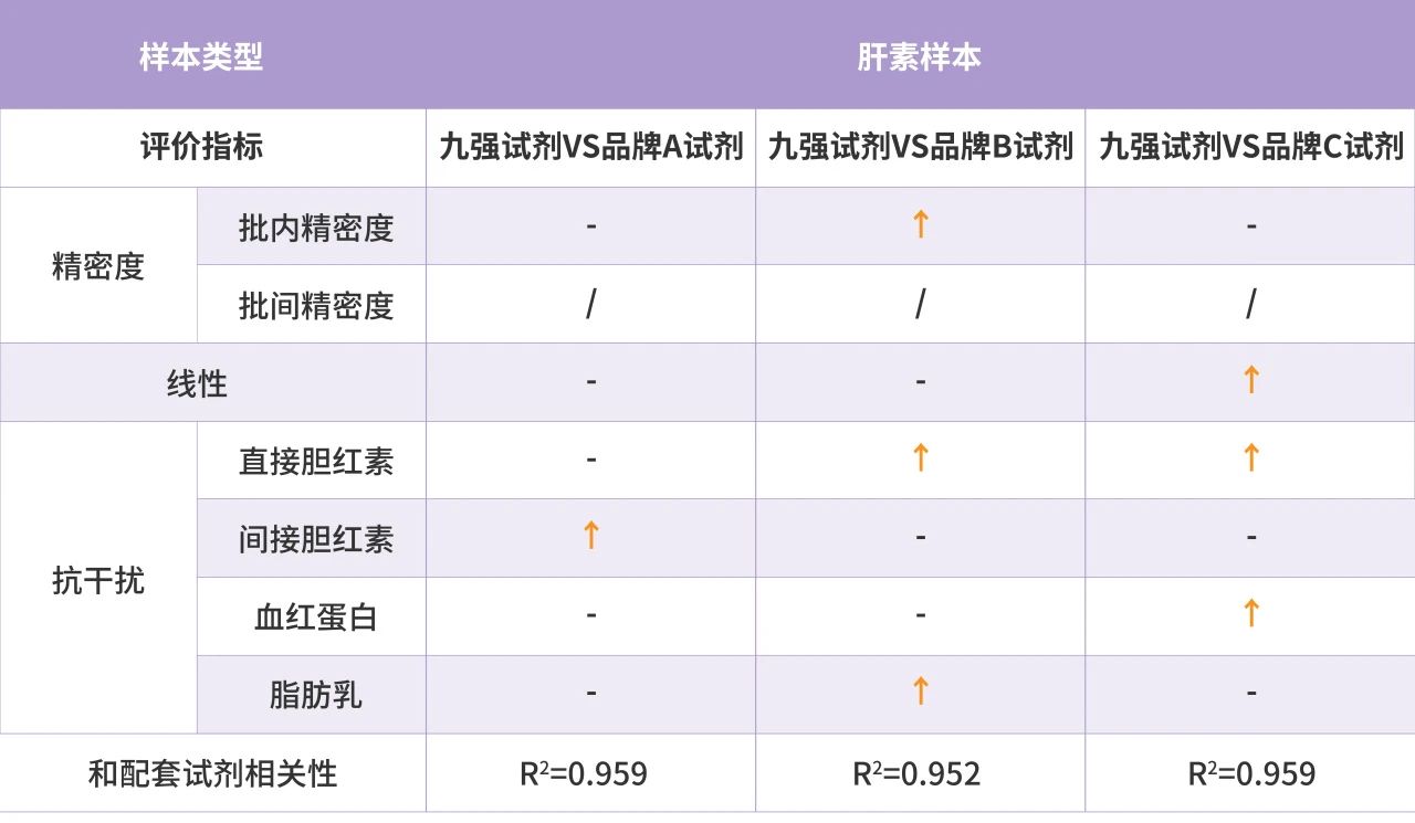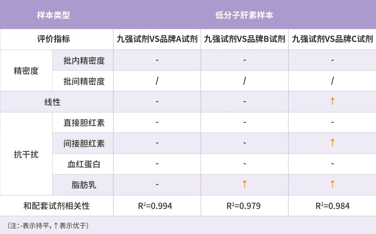 九強直接膽紅素可以做到10mg/dl,血紅蛋白可以做到125mg/dl,而對照試劑分別只能做到5mg/dl和不到125mg/dl,在直接膽紅素和血紅蛋白的抗干擾方面均優(yōu)于原裝配套試劑。